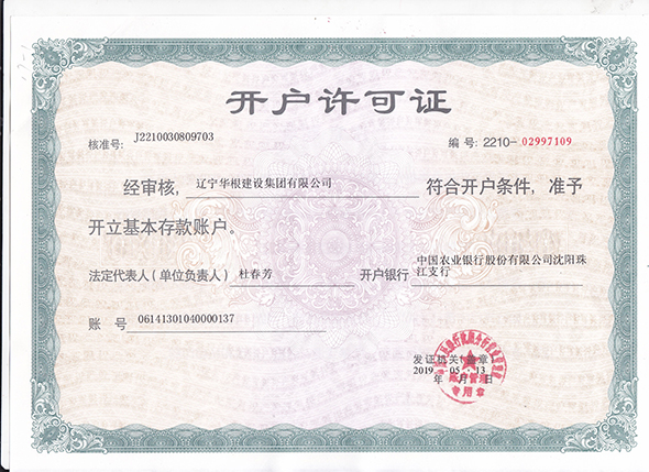丹东华根集团开户许可证